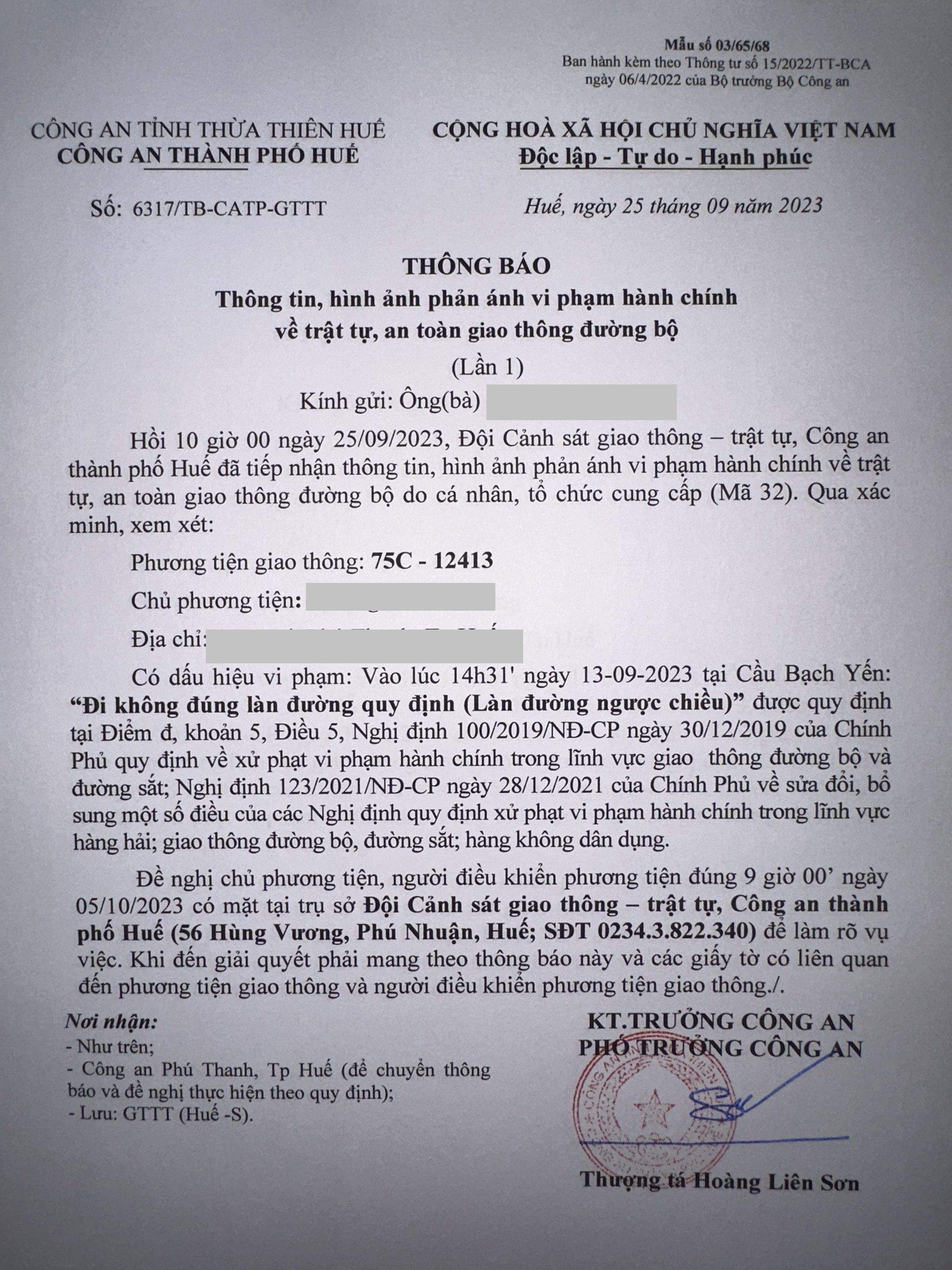 Công an thành phố Huế cập nhật quyết định xử phạt: (Đính kèm quyết định)