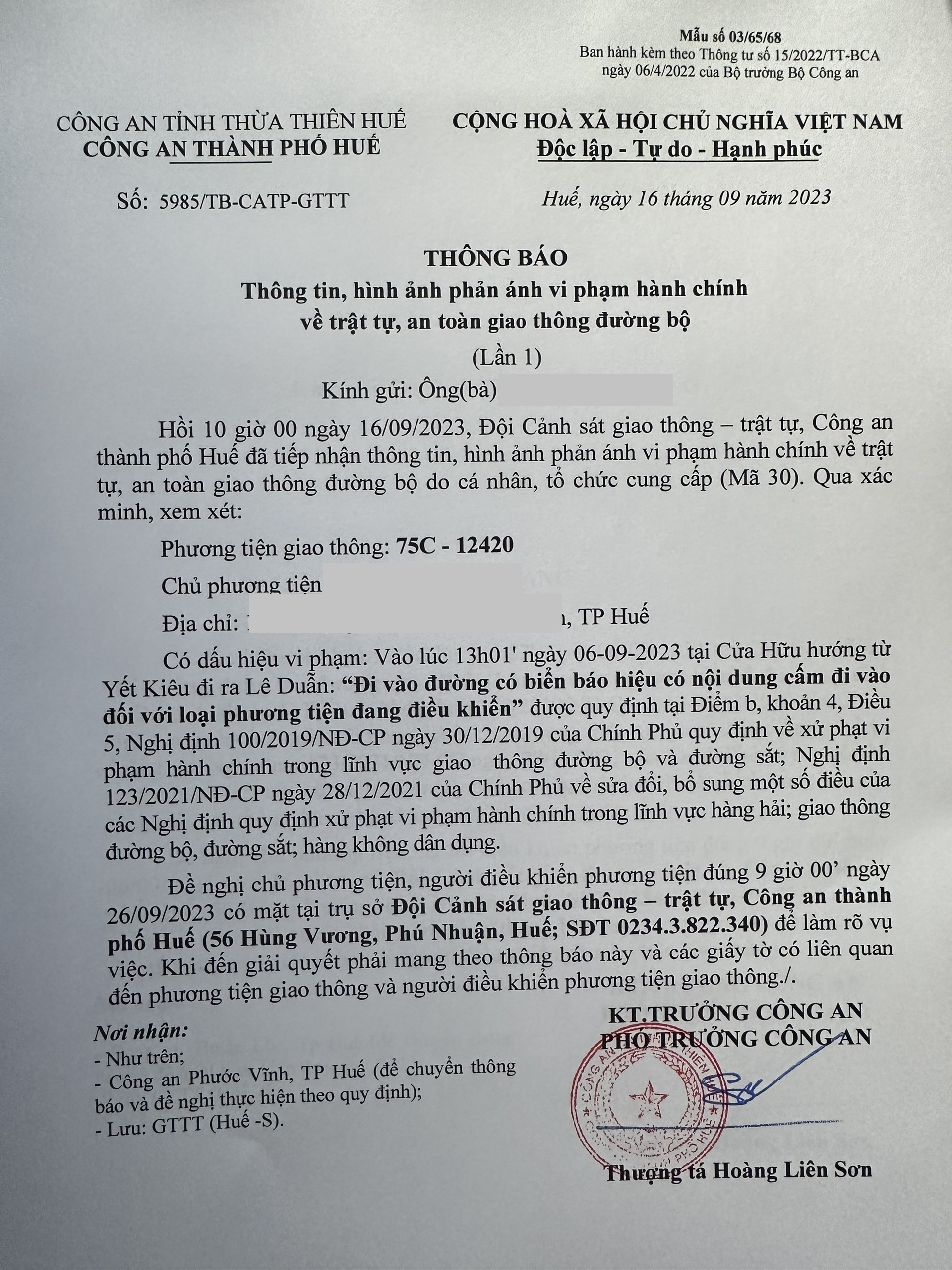 Vấn đề Ông/Bà phản ánh, Công an tỉnh đã chỉ đạo Công an thành phố Huế kiểm tra và xin thông báo kết quả như sau: