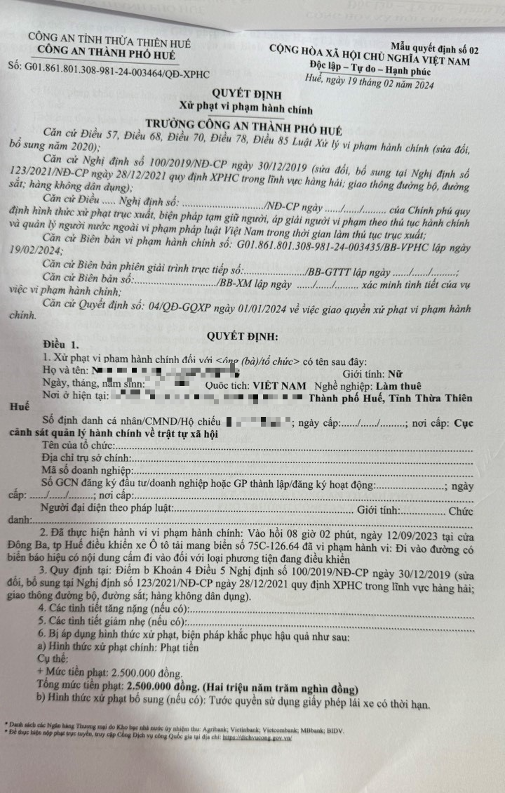 Công an thành phố cập nhật Quyết định xử phạt. (Đính kèm QĐ)