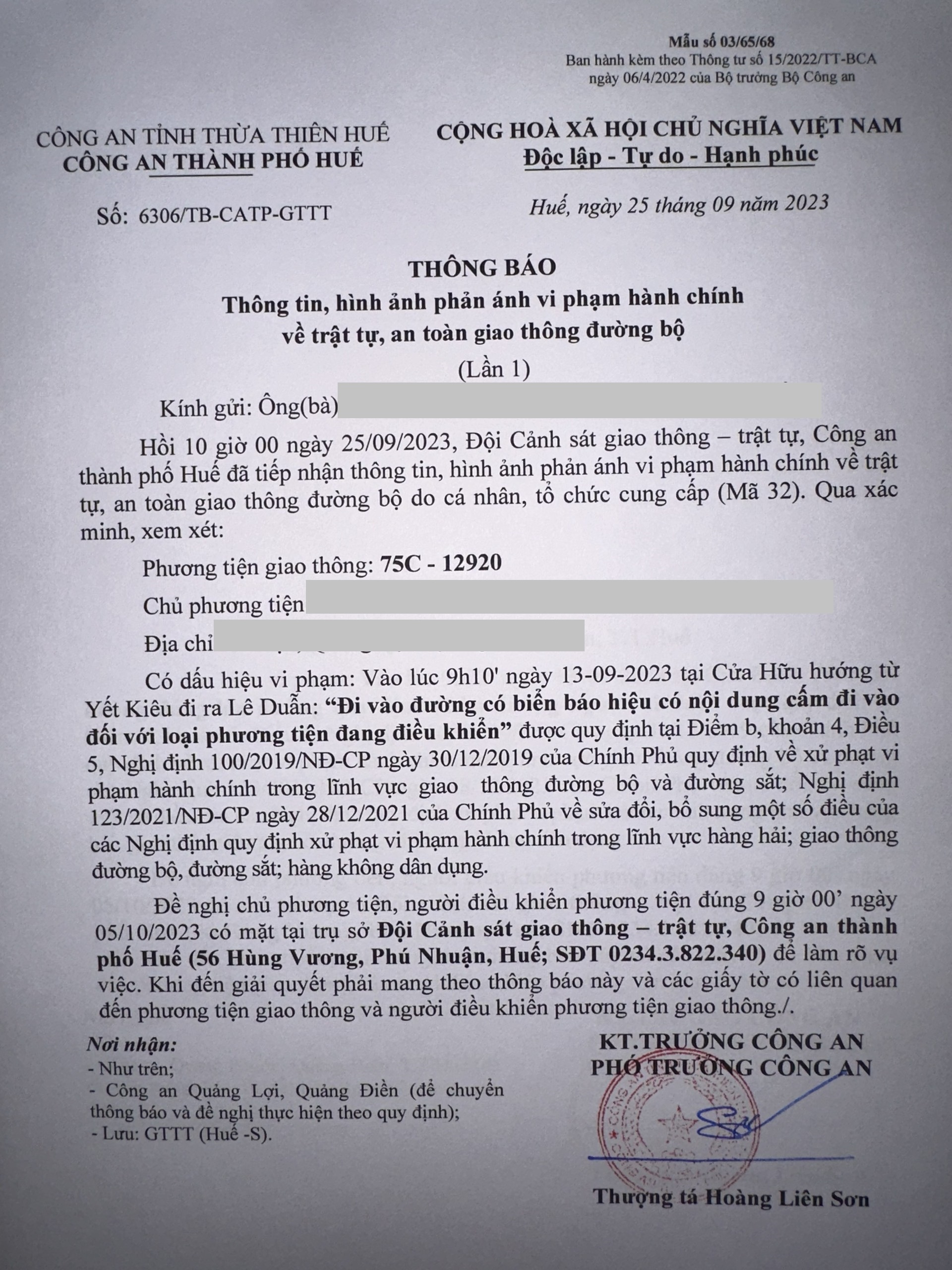 Vấn đề quý Ông/Bà phản ánh, Công an tỉnh đã chỉ đạo Công an thành phố Huế kiểm tra và xin thông báo kết quả như sau: