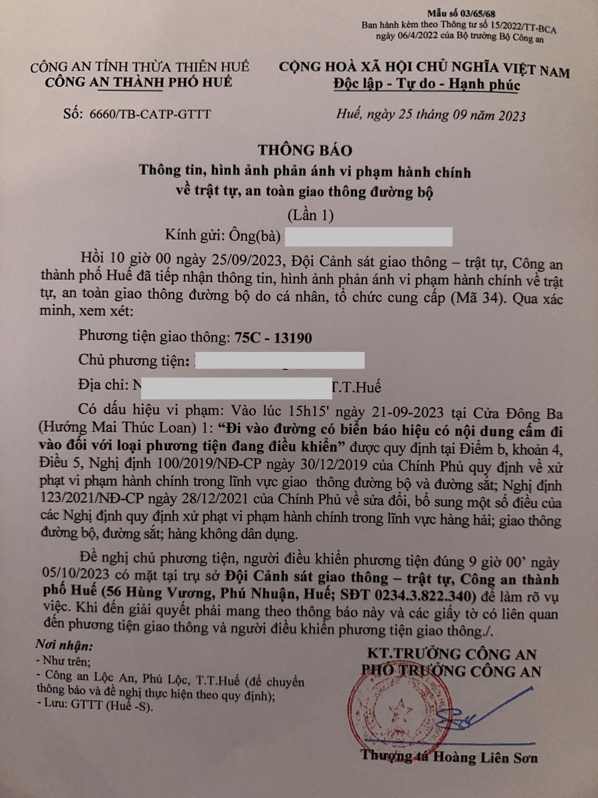 Công an thành phố cập nhật Quyết định xử phạt.
