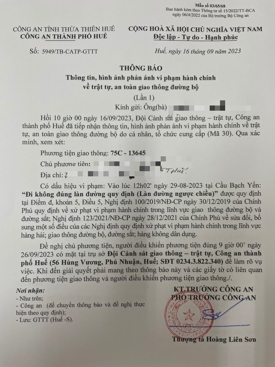 Vấn đề quý Ông/Bà phản ánh, Công an tỉnh đã chỉ đạo Công an thành phố Huế kiểm tra và xin thông báo kết quả như sau: