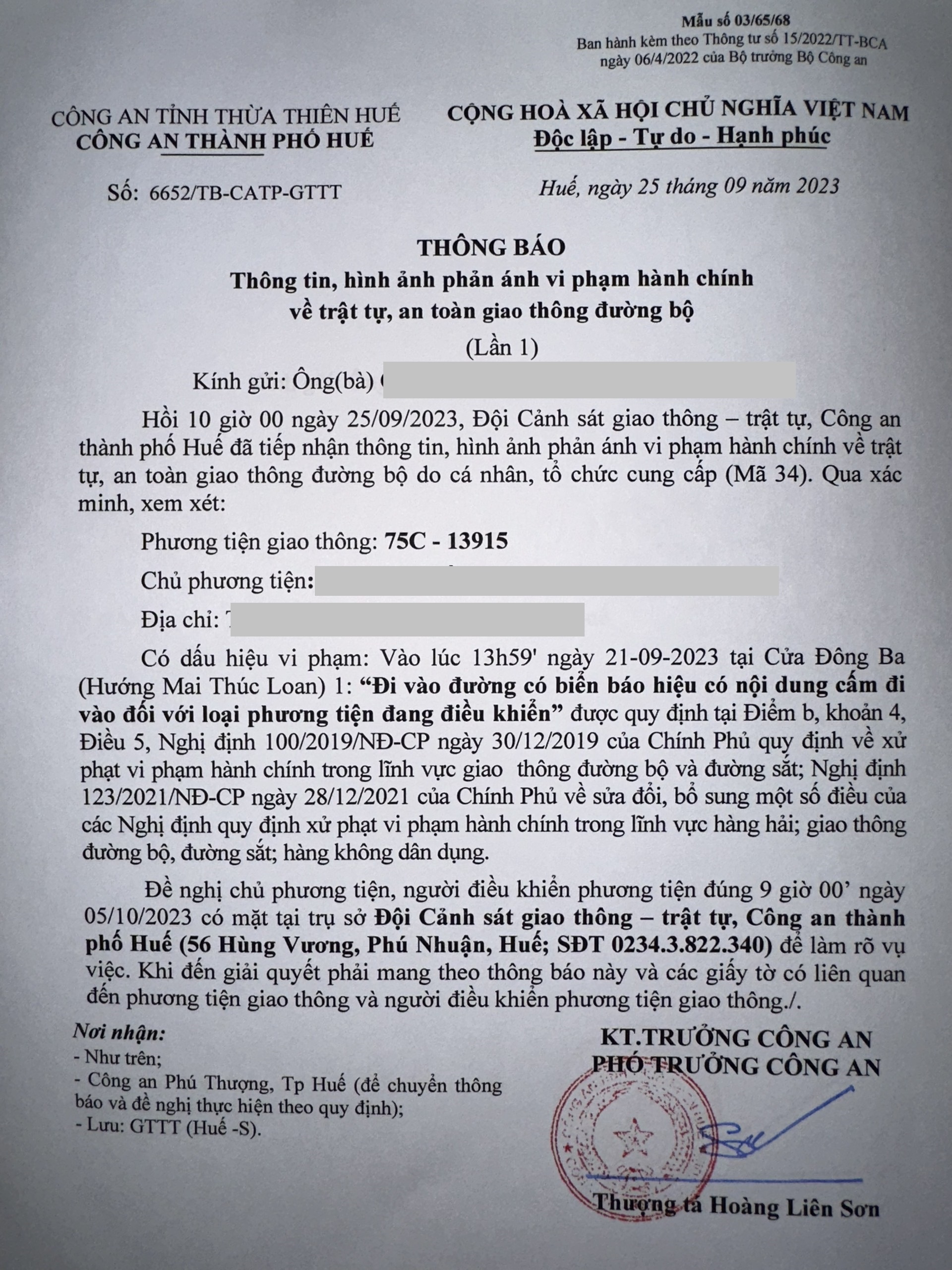 Vấn đề quý Ông/Bà phản ánh, Công an tỉnh đã chỉ đạo Công an thành phố Huế kiểm tra và xin thông báo kết quả như sau: