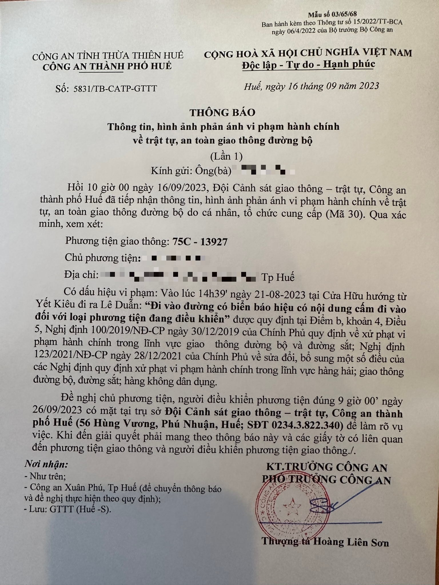 Vấn đề quý Ông/Bà phản ánh, Công an tỉnh đã chỉ đạo Công an thành phố Huế kiểm tra và xin thông báo kết quả xử lý như sau: