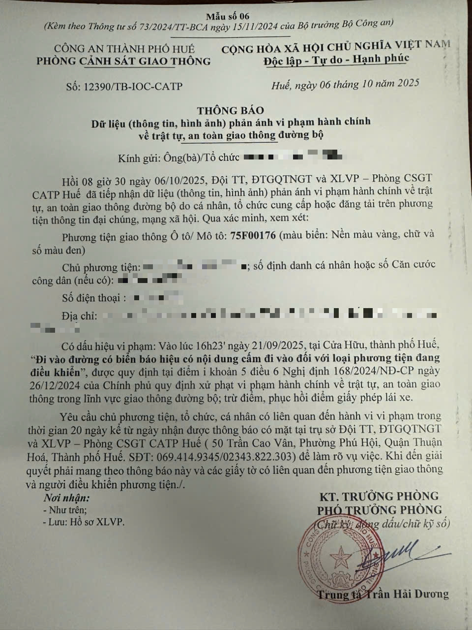 Vấn đề quý Ông/Bà phản ánh, Phòng Cảnh sát giao thông – Công an thành phố Huế đã kiểm tra và xin thông báo kết quả như sau: