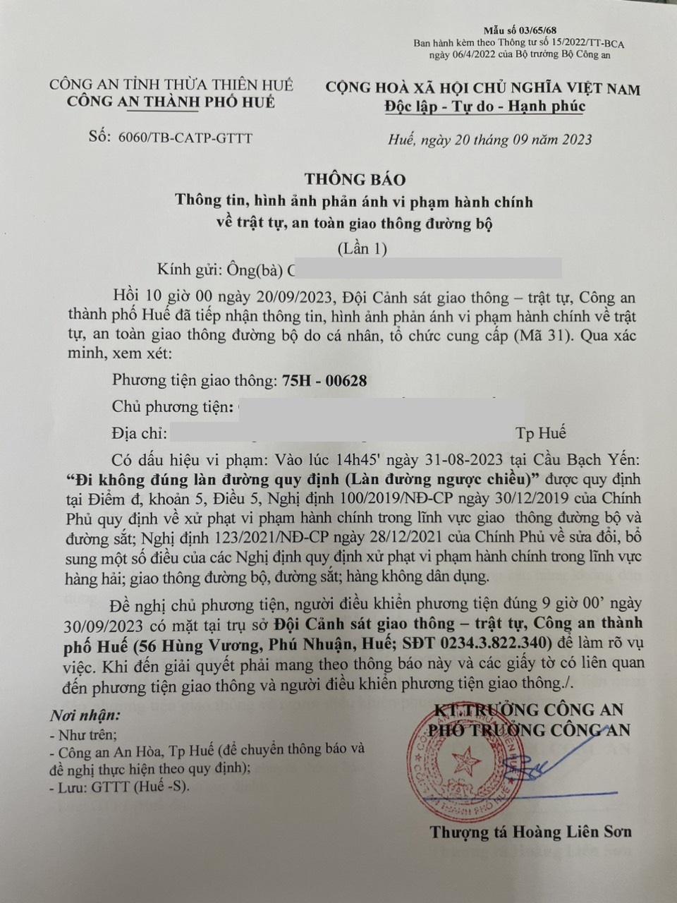 Vấn đề quý Ông/Bà phản ánh, Công an tỉnh đã chỉ đạo Công an thành phố Huế kiểm tra và xin thông báo kết quả xử lý như sau: