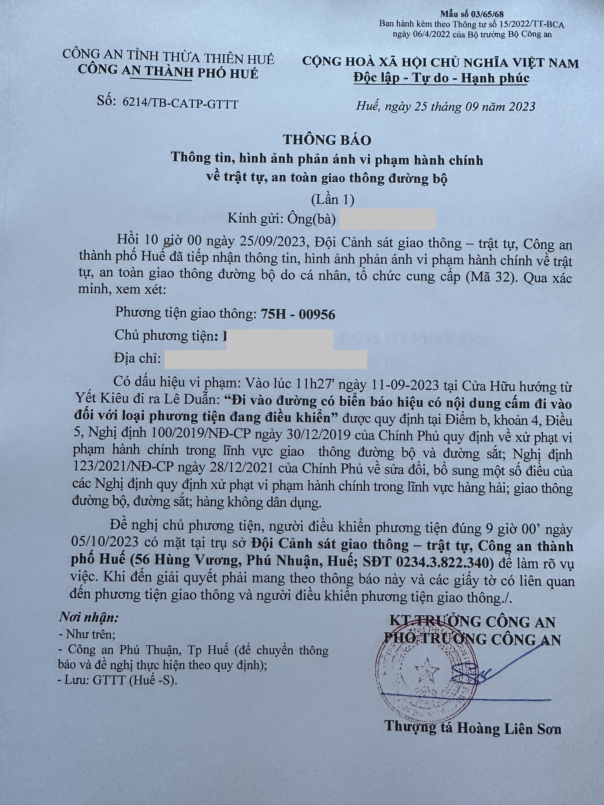 Công an thành phố cập nhật Quyết định xử phạt. (Đính kèm QĐ)