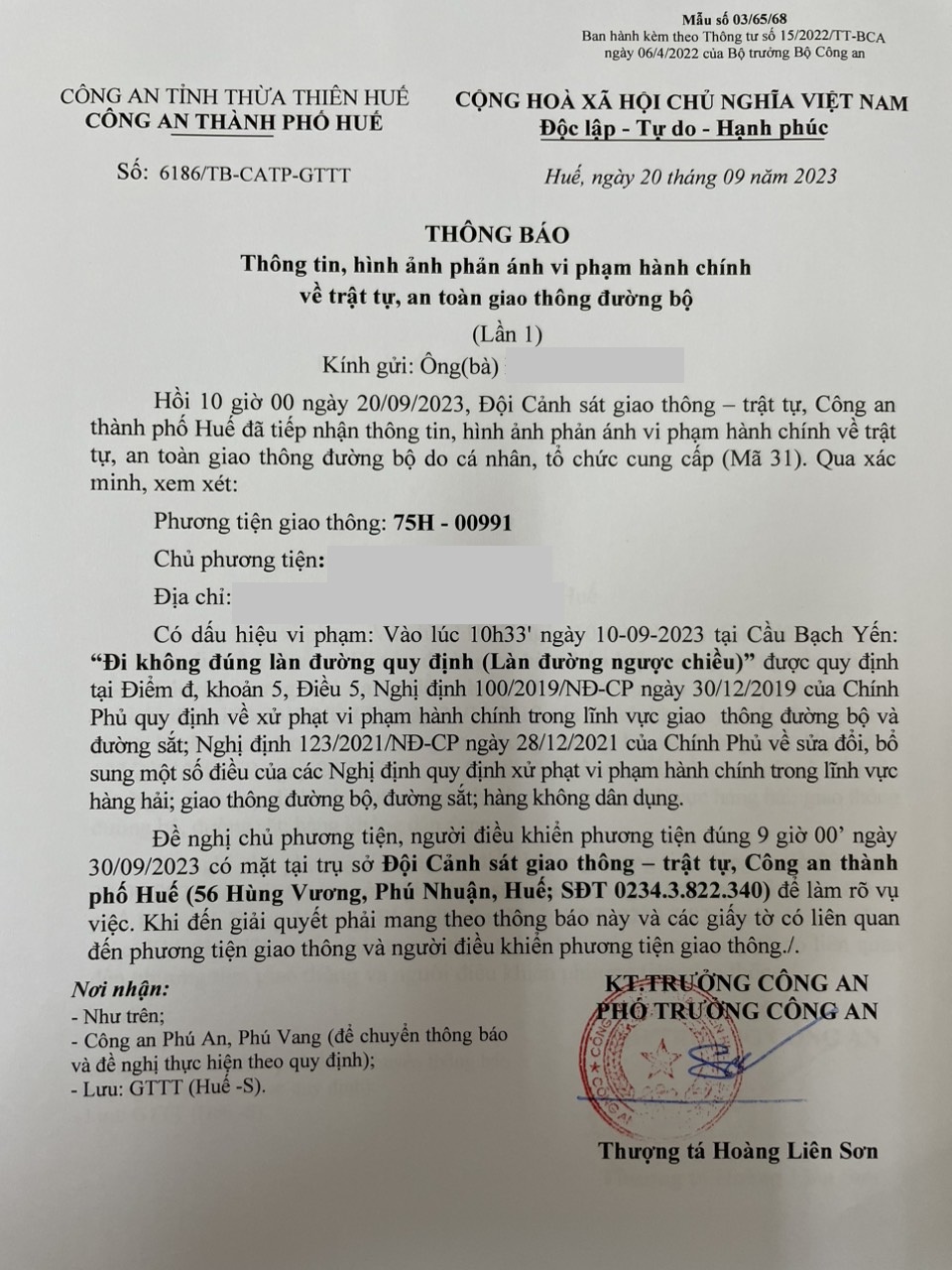 Vấn đề quý Ông/Bà phản ánh, Công an tỉnh đã chỉ đạo Công an thành phố Huế kiểm tra và xin thông báo kết quả như sau: