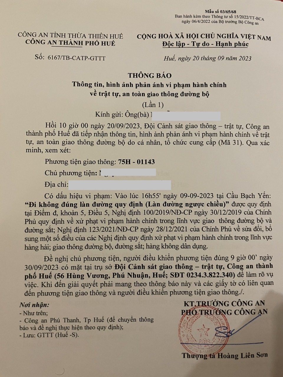 Công an thành phố cập nhật kết quả: Qua xác minh làm việc với chủ phương tiện vi phạm lỗi: Không chấp hành hiệu lệnh, chỉ dẫn của vạch kẻ đường, quy định tại điểm a, khoản 1, điều 5 Nghị định 100/2019/NĐ-CP được sửa đổi, bổ sung tại Nghị định 123/NĐ-CP ngày 28/12/2021. Ra Quyết định xử phạt 350.000đ. (Đính kèm Quyết định)