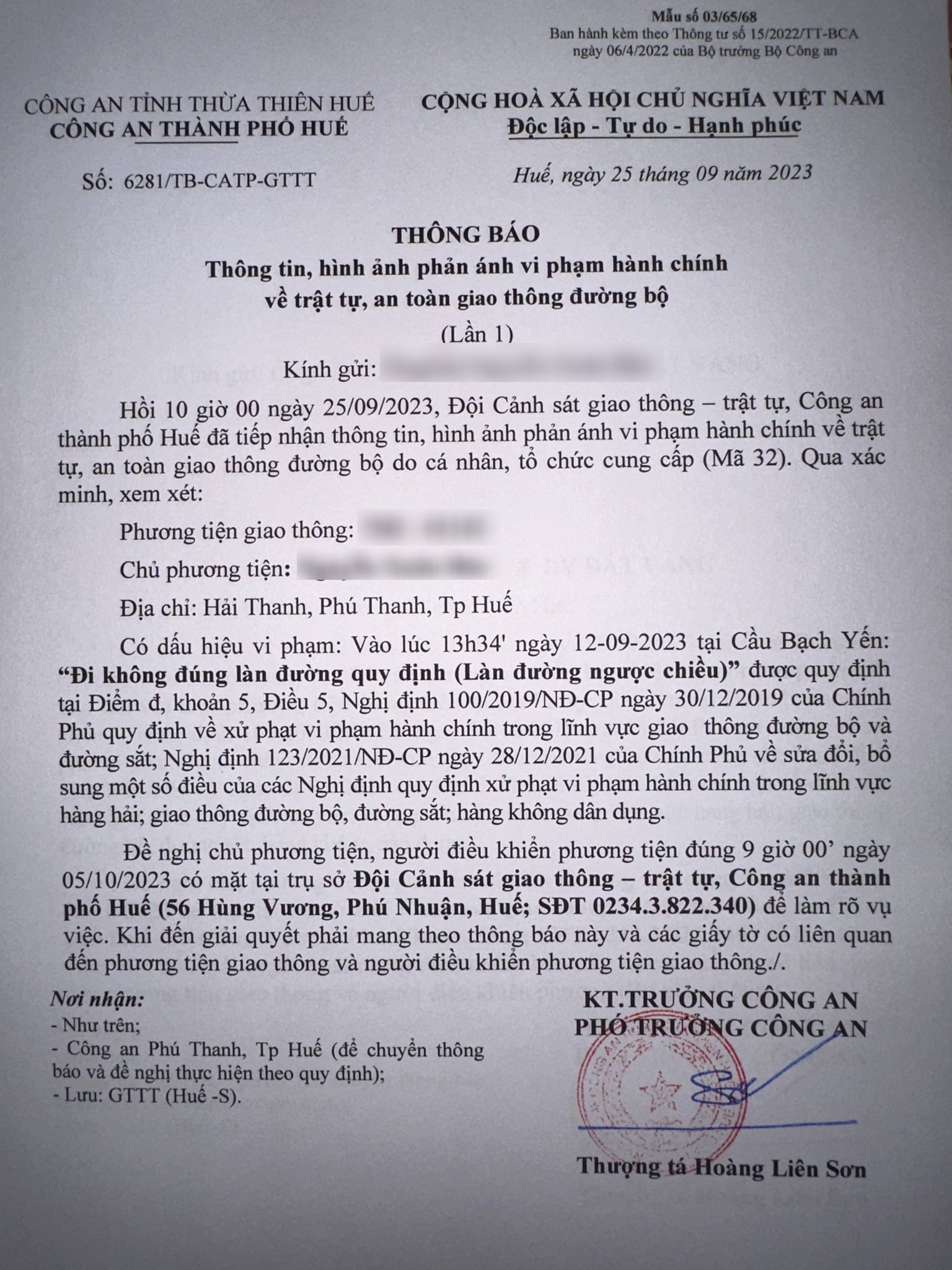 Công an thành phố cập nhật kết quả: Qua xác minh làm việc với chủ phương tiện vi phạm lỗi: Không chấp hành hiệu lệnh, chỉ dẫn của vạch kẻ đường, quy định tại điểm a, khoản 1, điều 5 Nghị định 100/2019/NĐ-CP được sửa đổi, bổ sung tại Nghị định 123/NĐ-CP ngày 28/12/2021. Ra Quyết định xử phạt 350.000đ. (Đính kèm Quyết định)