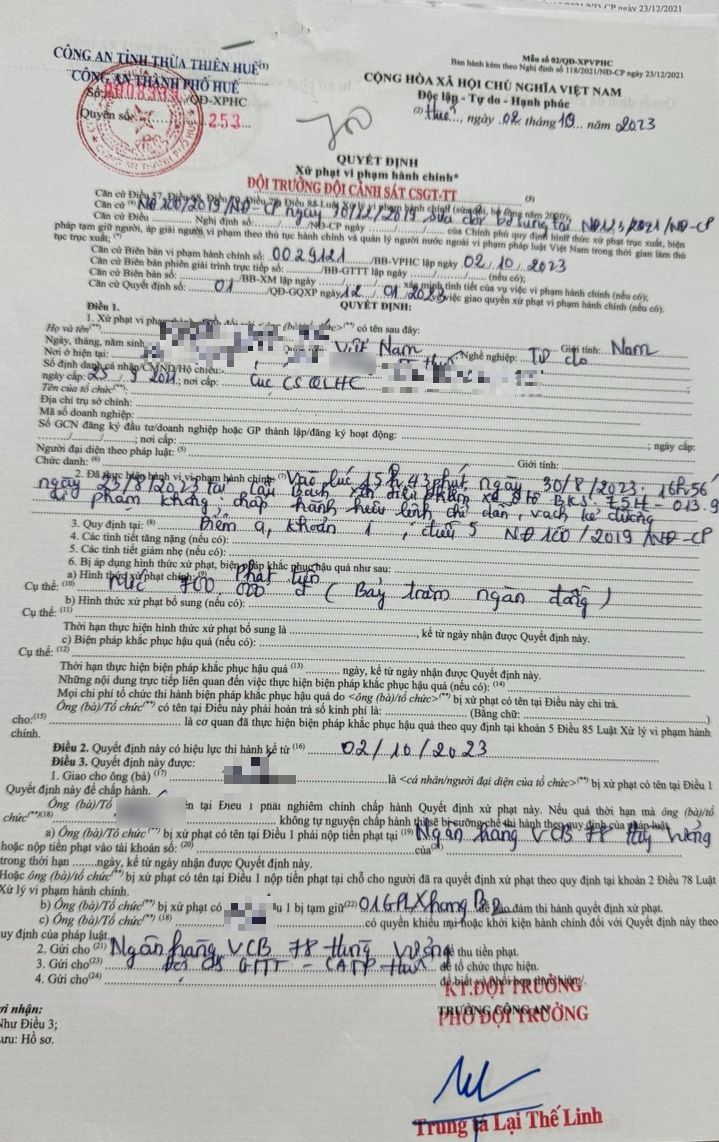 Vấn đề quý Ông/Bà phản ánh, Công an tỉnh đã chỉ đạo Công an thành phố Huế kiểm tra và xin thông báo kết quả xử lý như sau: