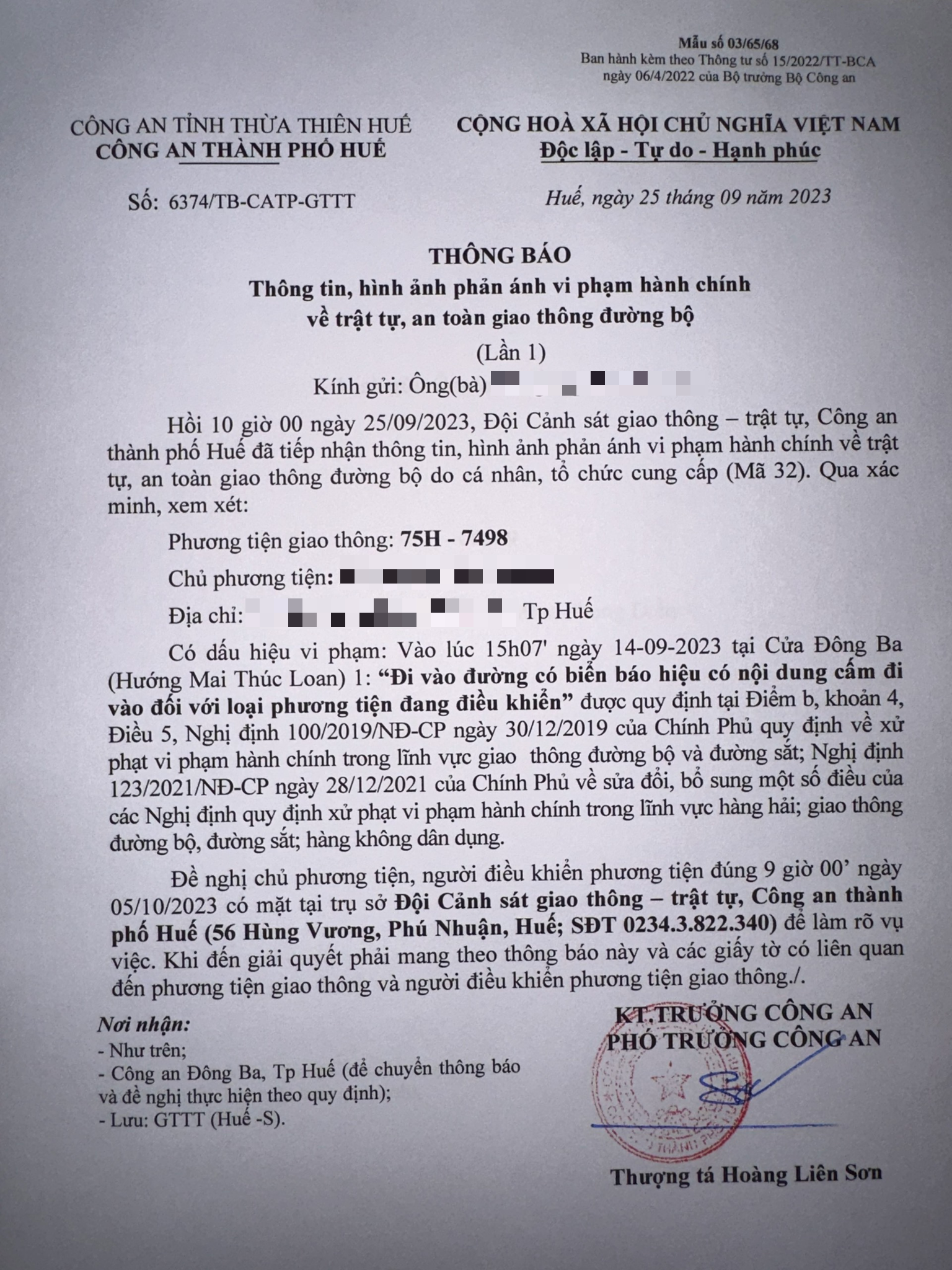 Công an thành phố cập nhật Quyết định xử phạt. (Đính kèm hình ảnh)
