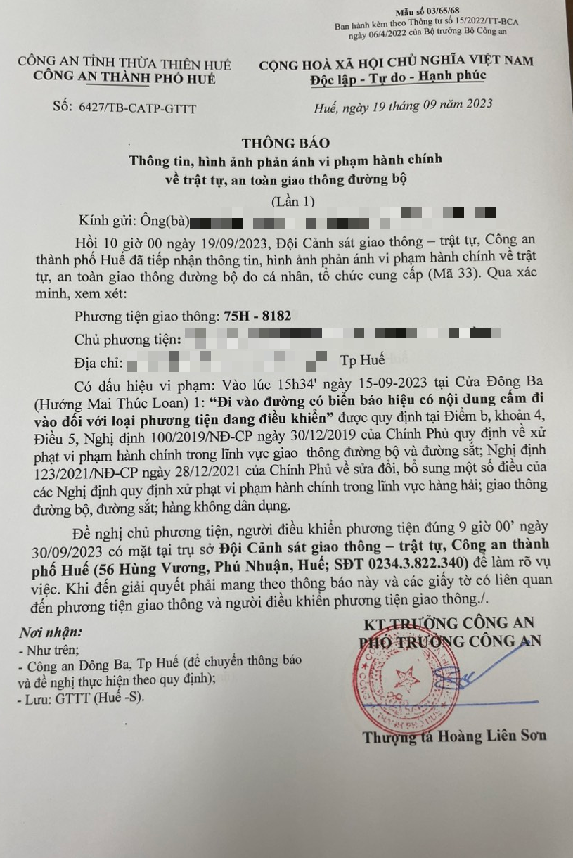 Vấn đề Ông/Bà phản ánh, Công an tỉnh đã chỉ đạo Công an thành phố Huế xác minh và xin thông báo kết quả như sau: