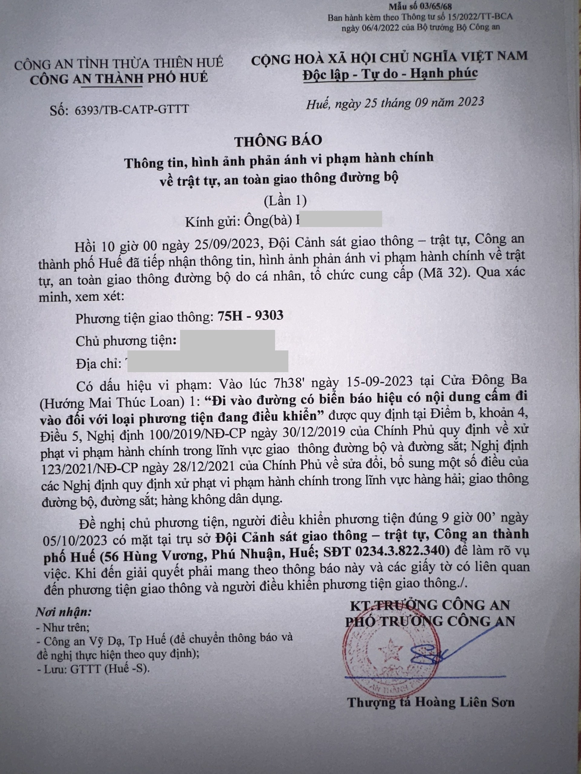 Vấn đề quý Ông/Bà phản ánh, Công an tỉnh đã chỉ đạo Công an thành phố Huế xác minh và xin thông báo kết quả như sau: