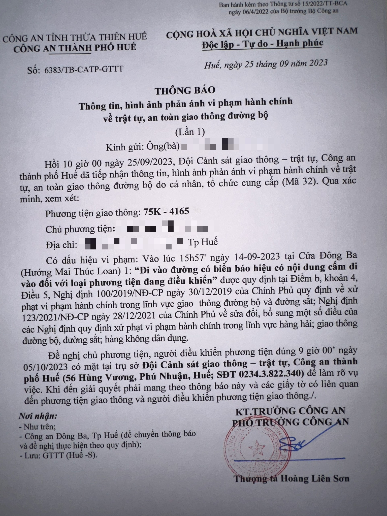 Công an thành phố cập nhật Quyết định xử phạt.