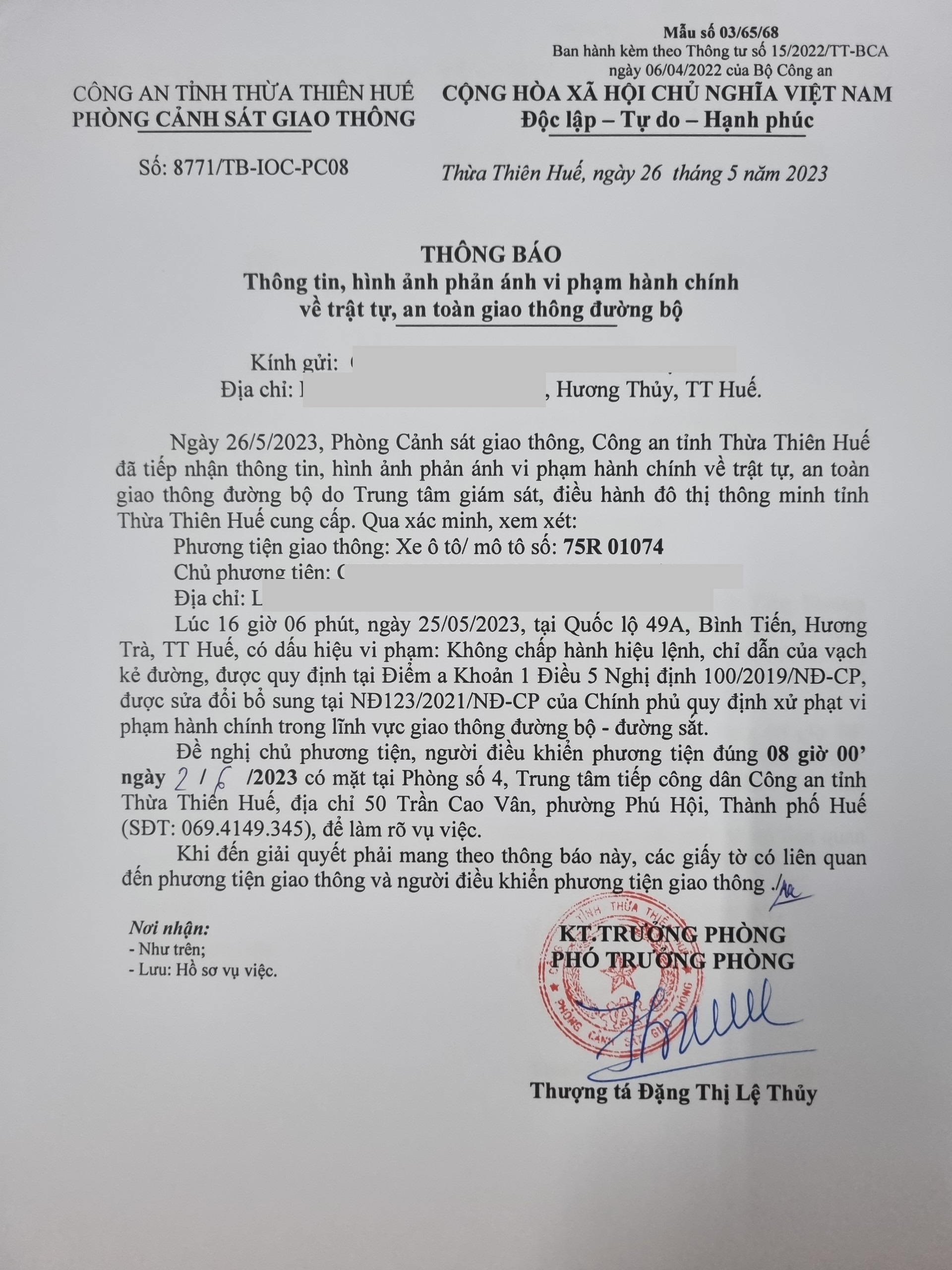 Vấn đề Ông/Bà phản ánh, Công an tỉnh đã chỉ đạo Phòng Cảnh sát giao thông kiểm tra và xin thông báo kết quả xử lý như sau: