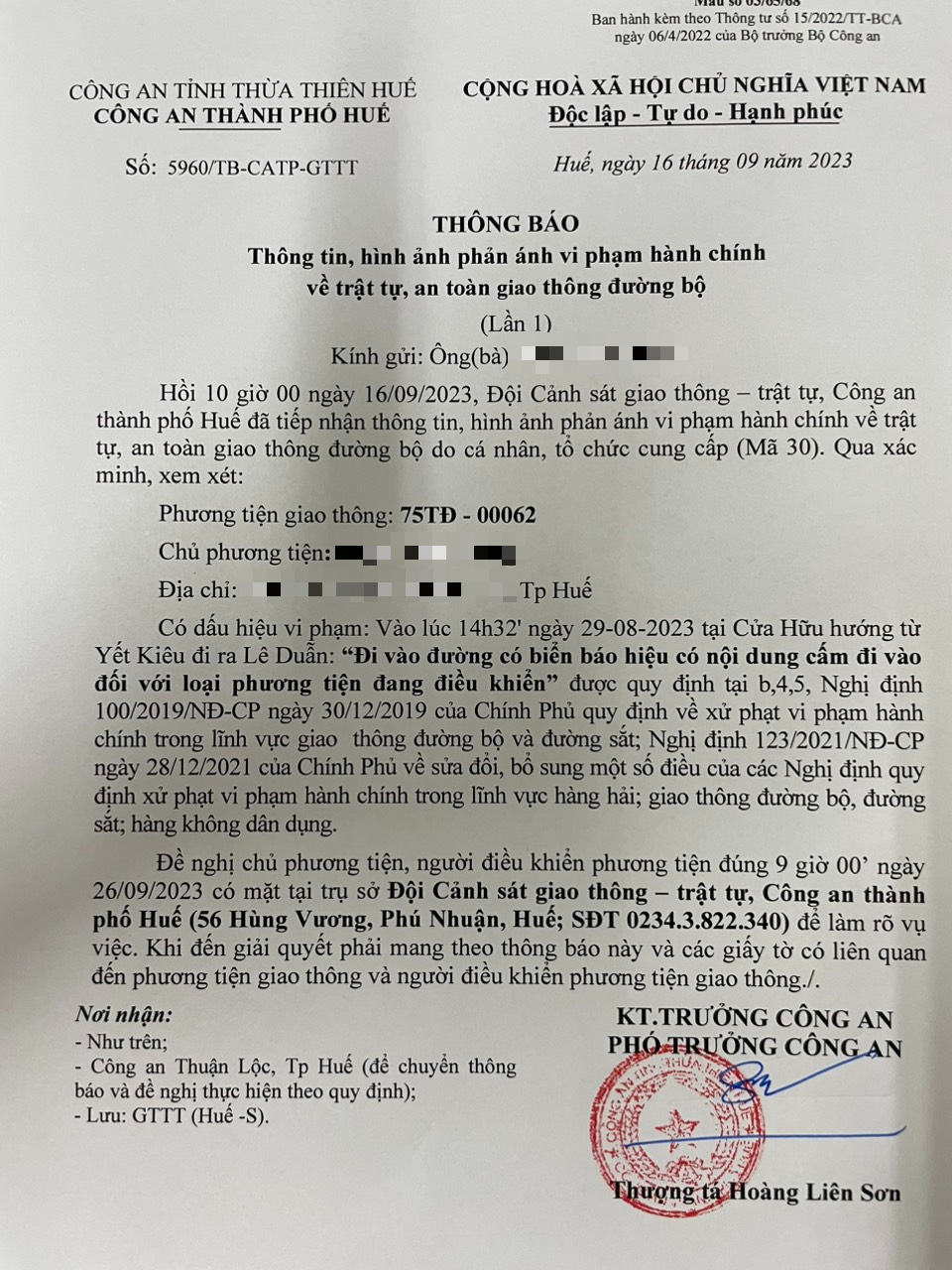 Vấn đề Ông/Bà phản ánh, Công an tỉnh đã chỉ đạo Công an thành phố Huế xin thông báo kết quả như sau:
