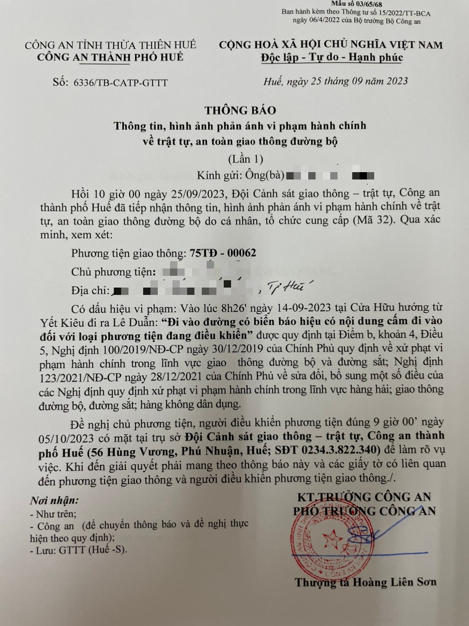 Vấn đề Ông/Bà phản ánh, Công an tỉnh đã chỉ đạo Công an thành phố Huế xác minh và xin thông báo kết quả như sau: