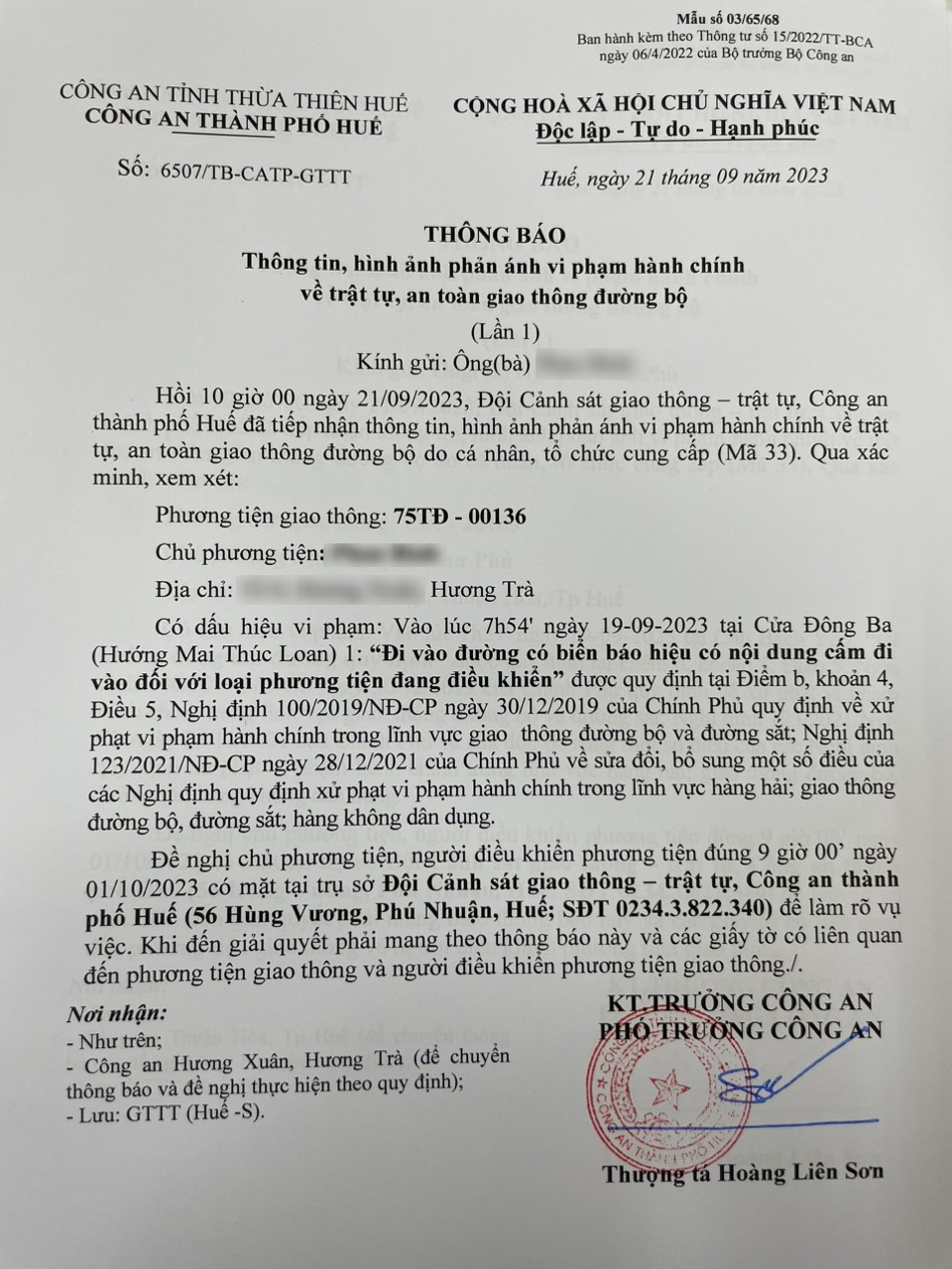 Vấn đề quý Ông/Bà phản ánh, Công an tỉnh đã chỉ đạo Công an thành phố Huế xác minh và xin thông báo kết quả như sau: