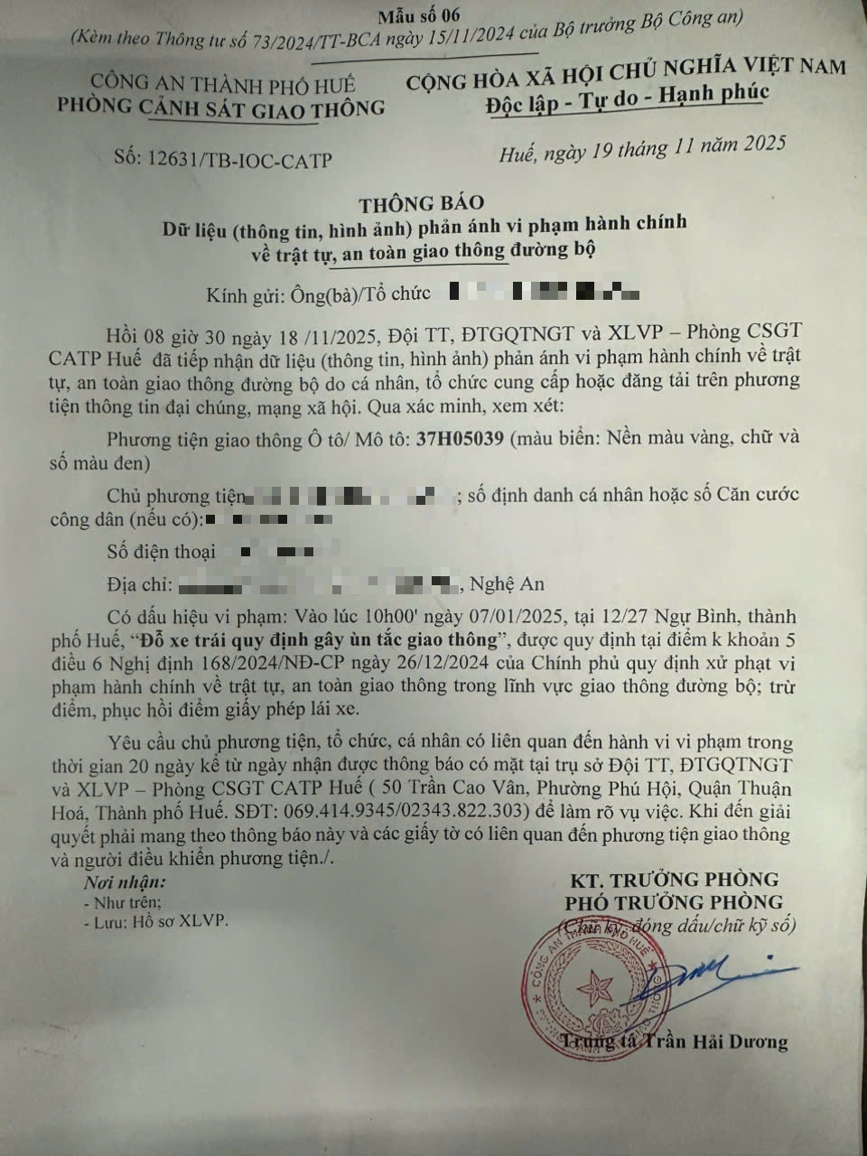 Vấn đề quý Ông/Bà phản ánh, Phòng Cảnh sát giao thông – Công an thành phố Huế đã kiểm tra và thông báo kết quả như sau: