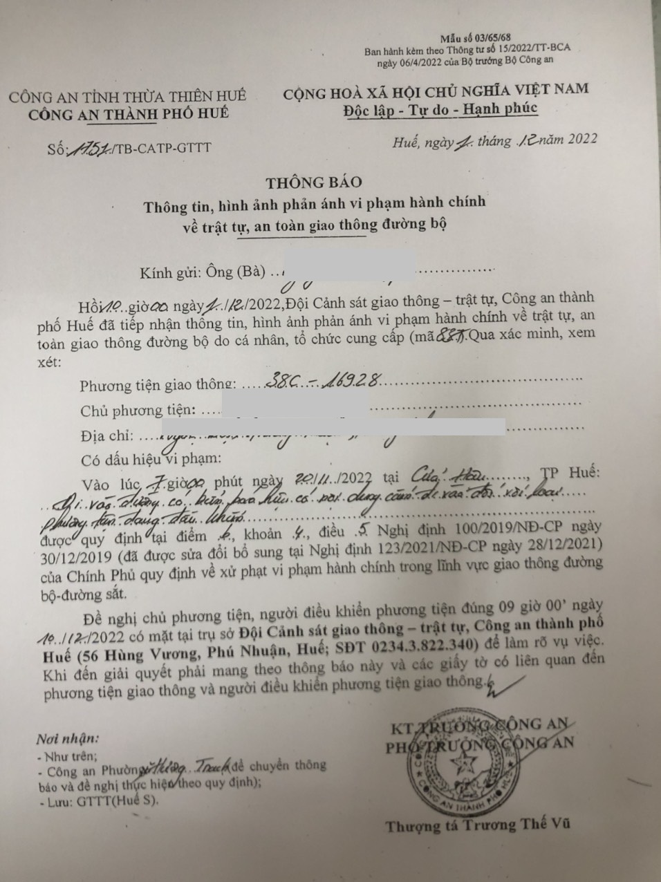 Vấn đề Ông/Bà phản ánh, Công an tỉnh đã chỉ đạo Công an thành phố Huế xin thông báo kết quả xử lý như sau:
