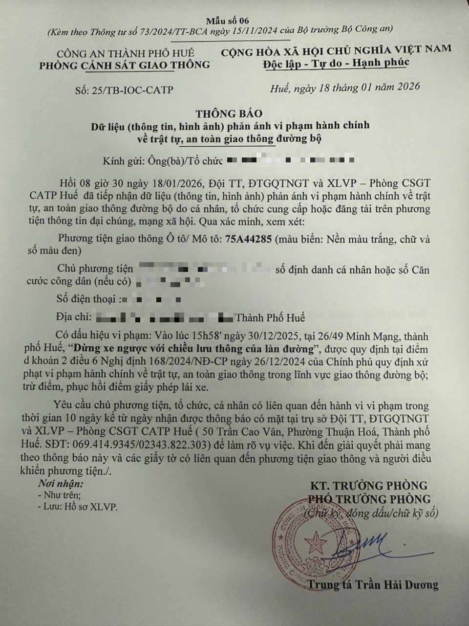 Vấn đề quý Ông/Bà phản ánh, Phòng Cảnh sát giao thông – Công an thành phố Huế đã kiểm tra và xin thông báo kết quả như sau: