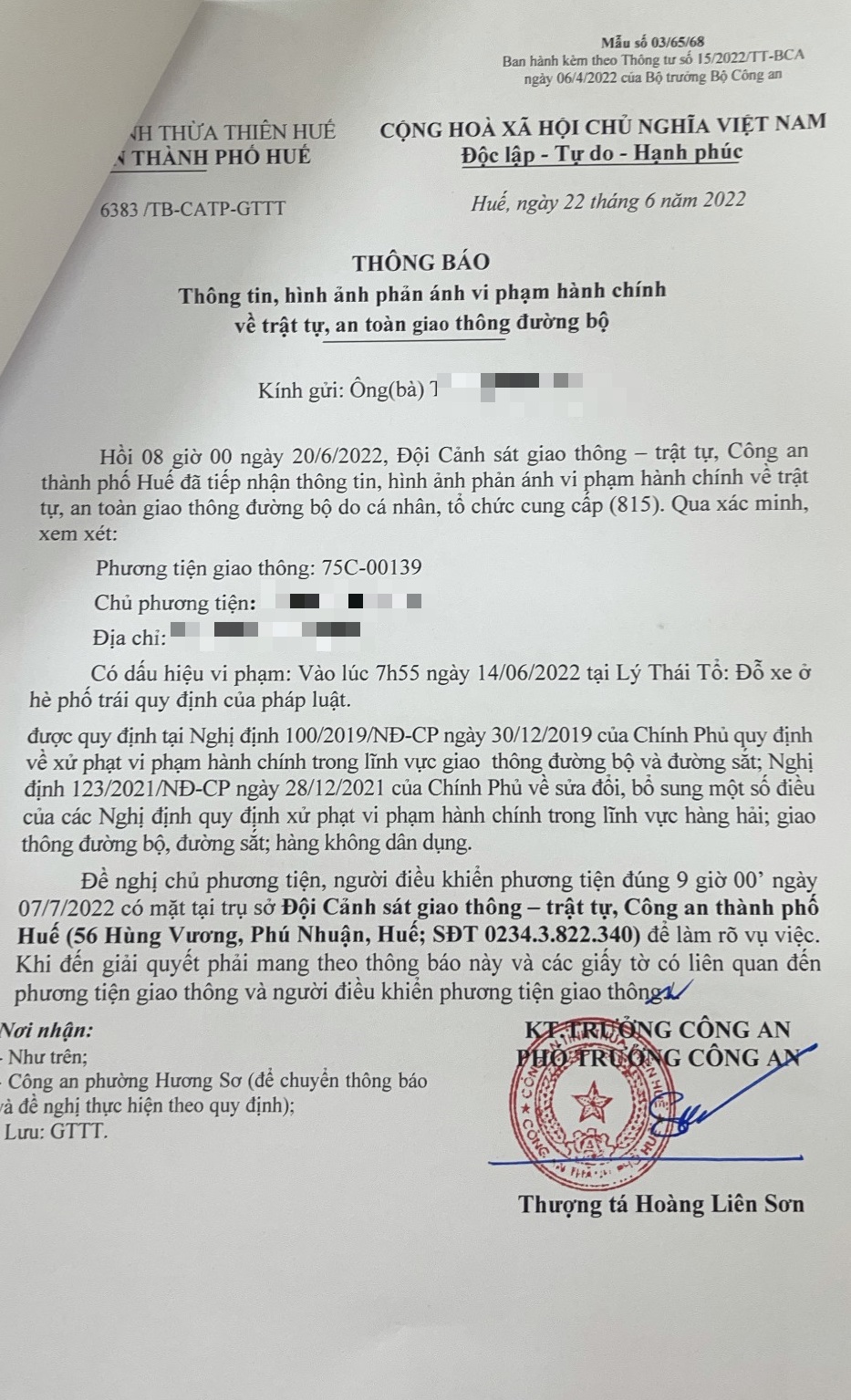 Vấn đề Ông/Bà phản ánh, Công an tỉnh đã chỉ đạo Công an thành phố Huế xin thông báo kết quả xử lý như sau:
