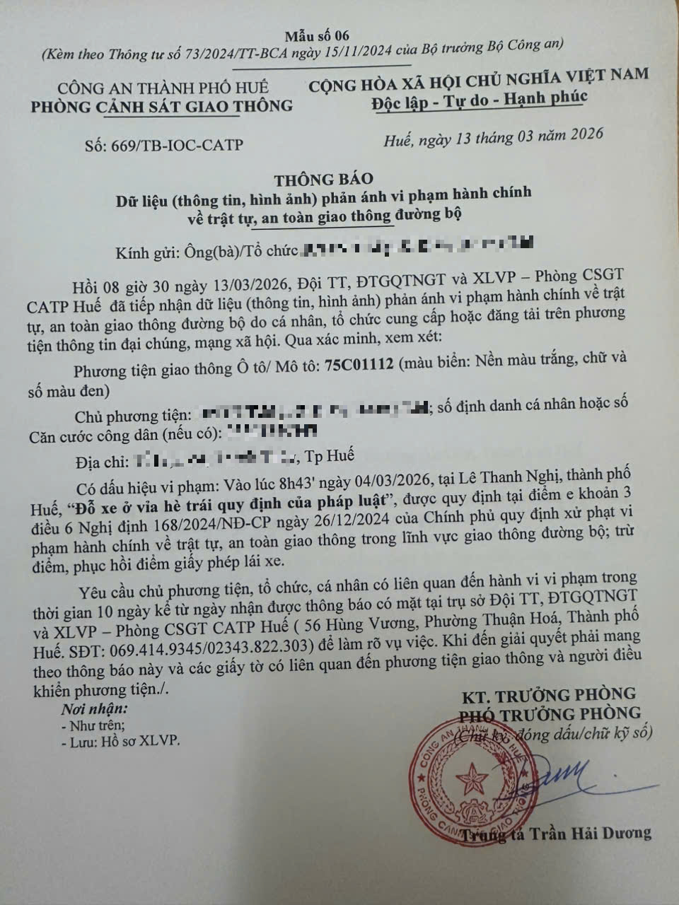 Vấn đề quý Ông/Bà phản ánh, Phòng Cảnh sát giao thông – Công an thành phố Huế đã kiểm trả và xin thông báo kết quả như sau:
