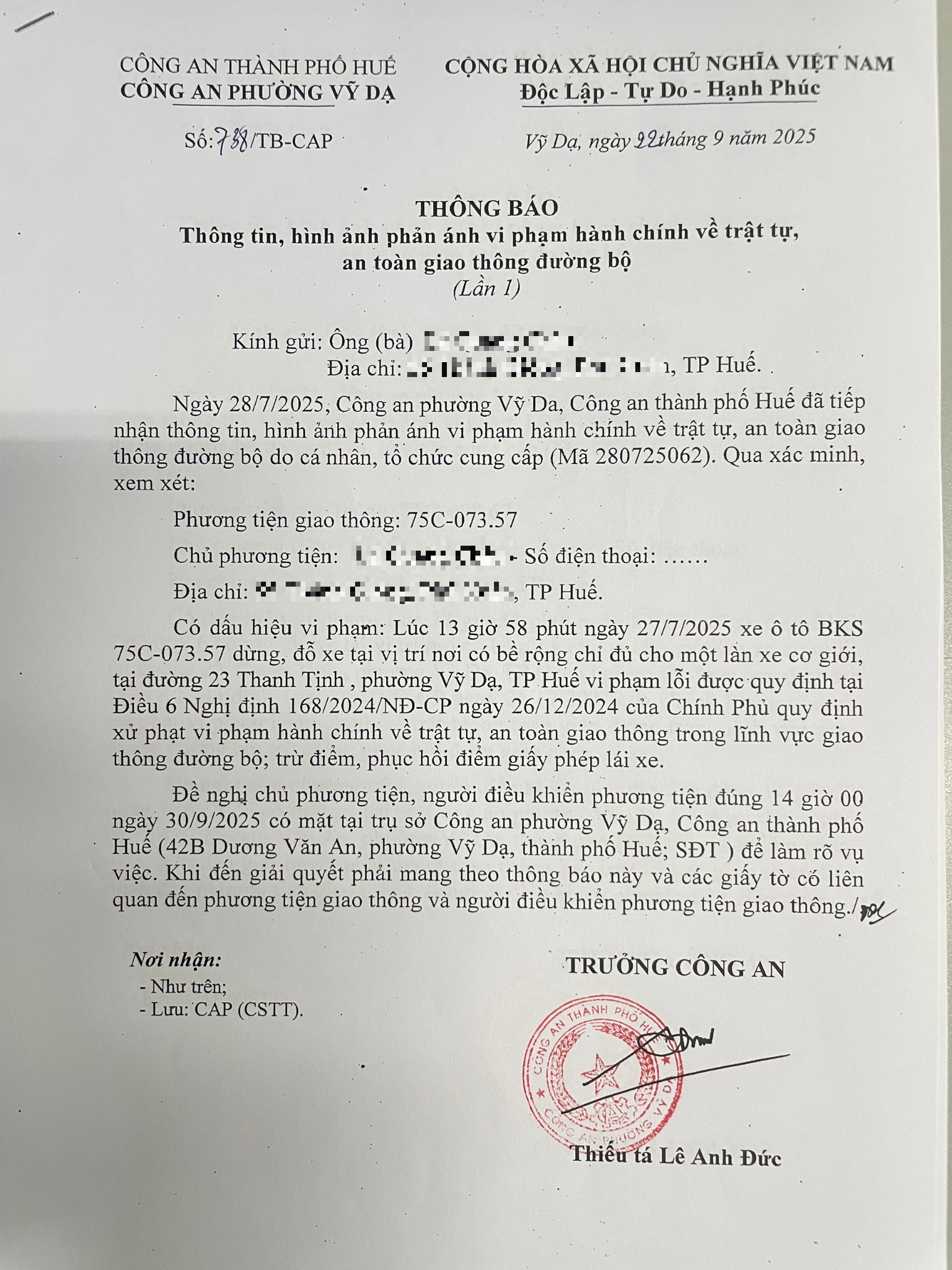 Vấn đề quý Ông/Bà phản ánh, Công an thành phố Huế đã chỉ đạo Công an phường Vỹ Dạ kiểm tra và xin thông báo kết quả như sau: