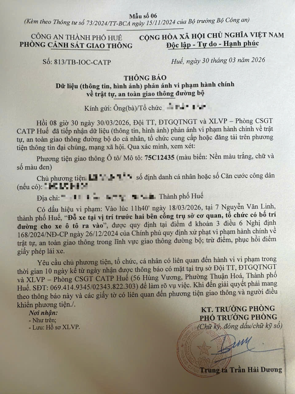 Vấn đề quý Ông/Bà phản ánh, Công an thành phố Huế đã chỉ đạo Phòng Cảnh sát giao thông kiểm tra và trả lời như sau: