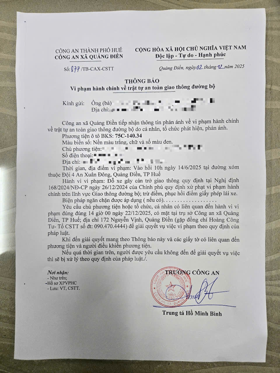 Vấn đề quý Ông/Bà phản ánh, Công an thành phố Huế đã chỉ đạo Công an xã Quảng Điềm kiểm tra và xin thông báo kết quả như sau: