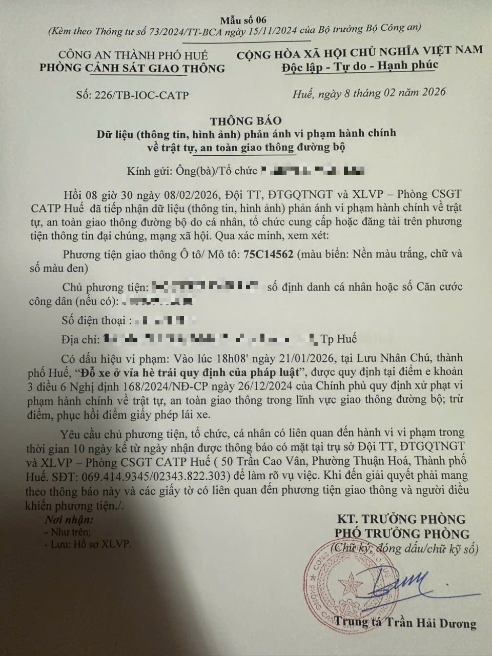 Vấn đề quý Ông/Bà phản ánh, Phòng Cảnh sát giao thông – Công an thành phố Huế đã kiểm tra và xin thông báo kết quả như sau: