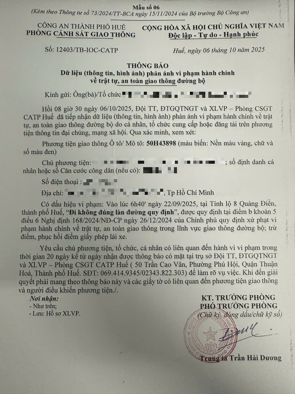 Vấn đề quý Ông/Bà phản ánh, Phòng Cảnh sát giao thông – Công an thành phố Huế đã kiểm tra và xin thông báo kết quả như sau: