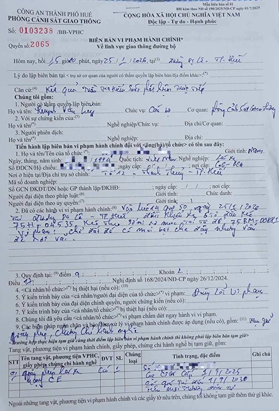 Do Công an phường chưa được phân cấp thẩm quyền xử phạt vi phạm hành chính đối với các phương tiện nêu trên, nên đã có văn bản đề nghị Phòng Cảnh sát giao thông – Công an thành phố Huế phối hợp kiểm tra, xử lý nhằm chấm dứt tình trạng này trong thời gian tới.