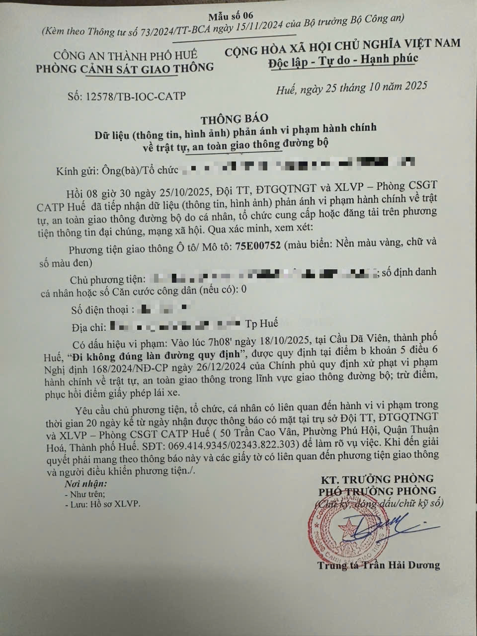Vấn đề quý Ông/Bà phản ánh, Phòng Cảnh sát giao thông – Công an thành phố Huế đã kiểm tra và xin thông báo kết quả như sau: