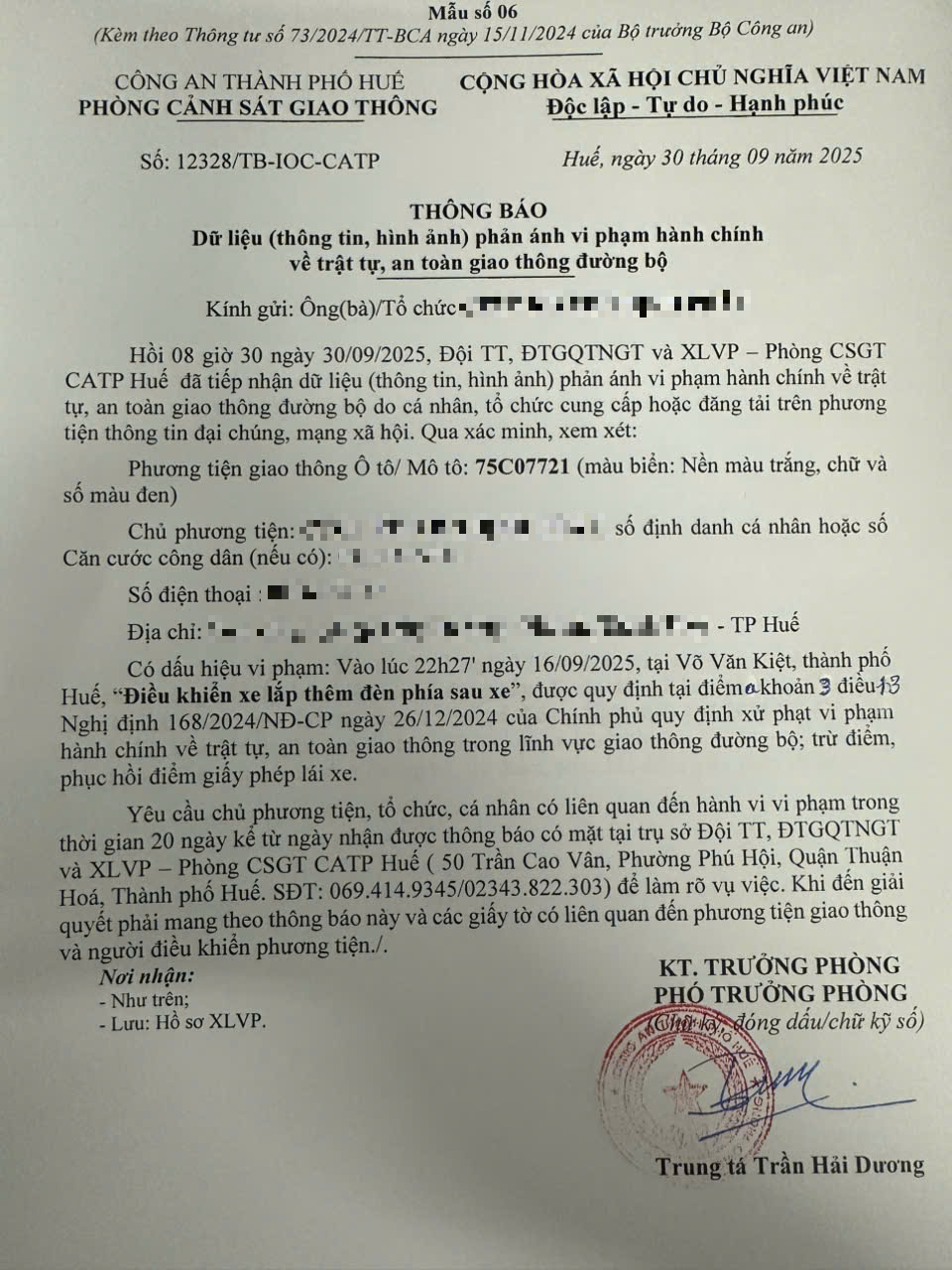 Vấn đề quý Ông/Bà phản ánh, Công an thành phố Huế đã chỉ đạo Phòng Cảnh sát giao thông kiểm tra và xin thông báo kết quả như sau:
