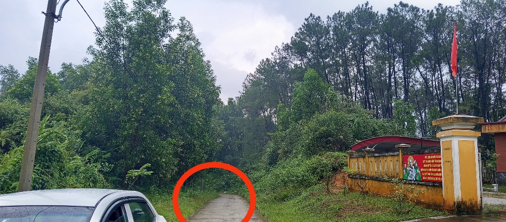 Cỏ mọc cao ở khúc cua gây nguy hiểm tại Ban Chỉ Huy Quân Sự Xã Bình Điền